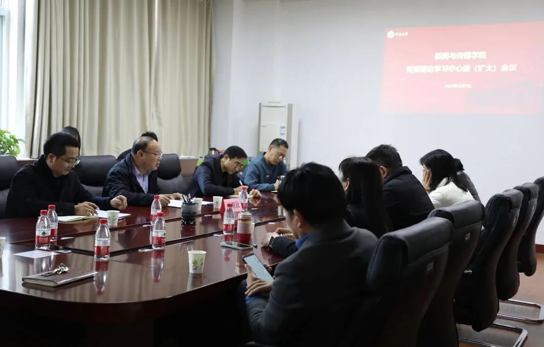 3月7日下午,新闻与传播学院在学院二楼会议室召开党委理论学习中心组(扩大)会议,会议邀请河南大学文化传承与创新研究中心主任王明钦作主题报告,学院全体领导班子成员、组织员、学科带头人和中层干部参加会议。会议由院党委书记乔石豪主持。