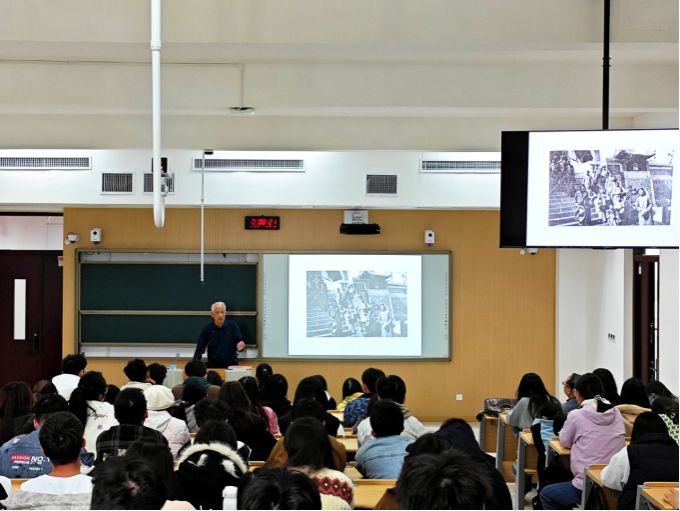 陶江立足于冀东抗战根据地的历史,以浓厚的家国情怀和严谨客观的叙述,为经济学院师生重现了那段山河激荡的烽火岁月。会上,陶江教授系统地向大家展现了冀东抗日根据地独特的历史、地理、政治和军事的背景,着重阐明了冀东抗日根据地在中国抗战史上不可磨灭的历史贡献。此外,陶江教授还通过展示中共北平城委团结青年学生抗日救国的剪影,将老照片里的历史场景变得可感可知。他勉励同学要树立正确的政治方向,胸怀远大理想抱负,主动将个人奋斗融入“国家富强、民族振兴、人民幸福”的伟大事业之中,让青春在时代坐标中找准方向。