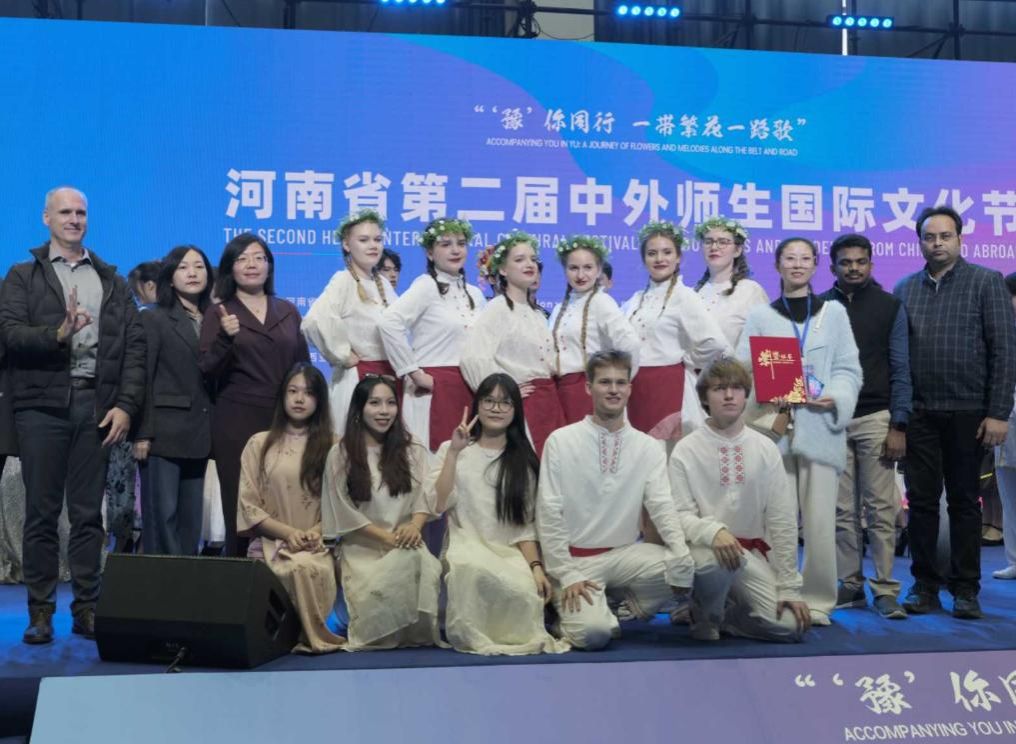 下午的文艺汇演将活动推向高潮。白俄罗斯学生表演的传统舞蹈“拉沃尼哈舞”,以欢快的节奏、优美的舞姿和鲜艳的民族服饰,生动展现了白俄罗斯的民俗风情,赢得现场观众阵阵掌声。在颁奖环节,我校凭借出色的组织工作和师生的精彩表现,荣获"优秀组织奖"。