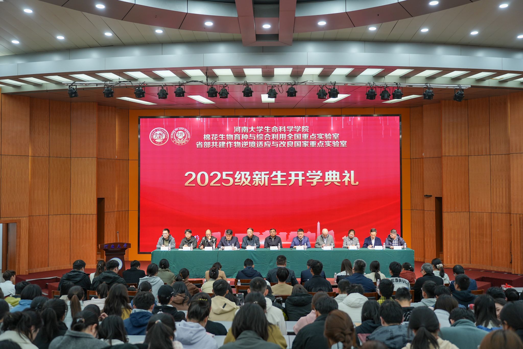 10月23日下午,生命科学学院、棉花生物育种与综合利用全国重点实验室、省部共建作物逆境适应与改良国家重点实验室2025级新生开学典礼在金明校区计算机大楼第二报告厅举行。生物学科带头人、河南大学原校长、国家杰青宋纯鹏教授,学术副校长、生命科学学院院长、国家杰青张立新教授及生命科学学院党政领导班子成员、重点实验室班子成员、拔尖人才、教师代表、2025级本硕博新生参加典礼。典礼由生命科学学院党委书记梁建忠主持。