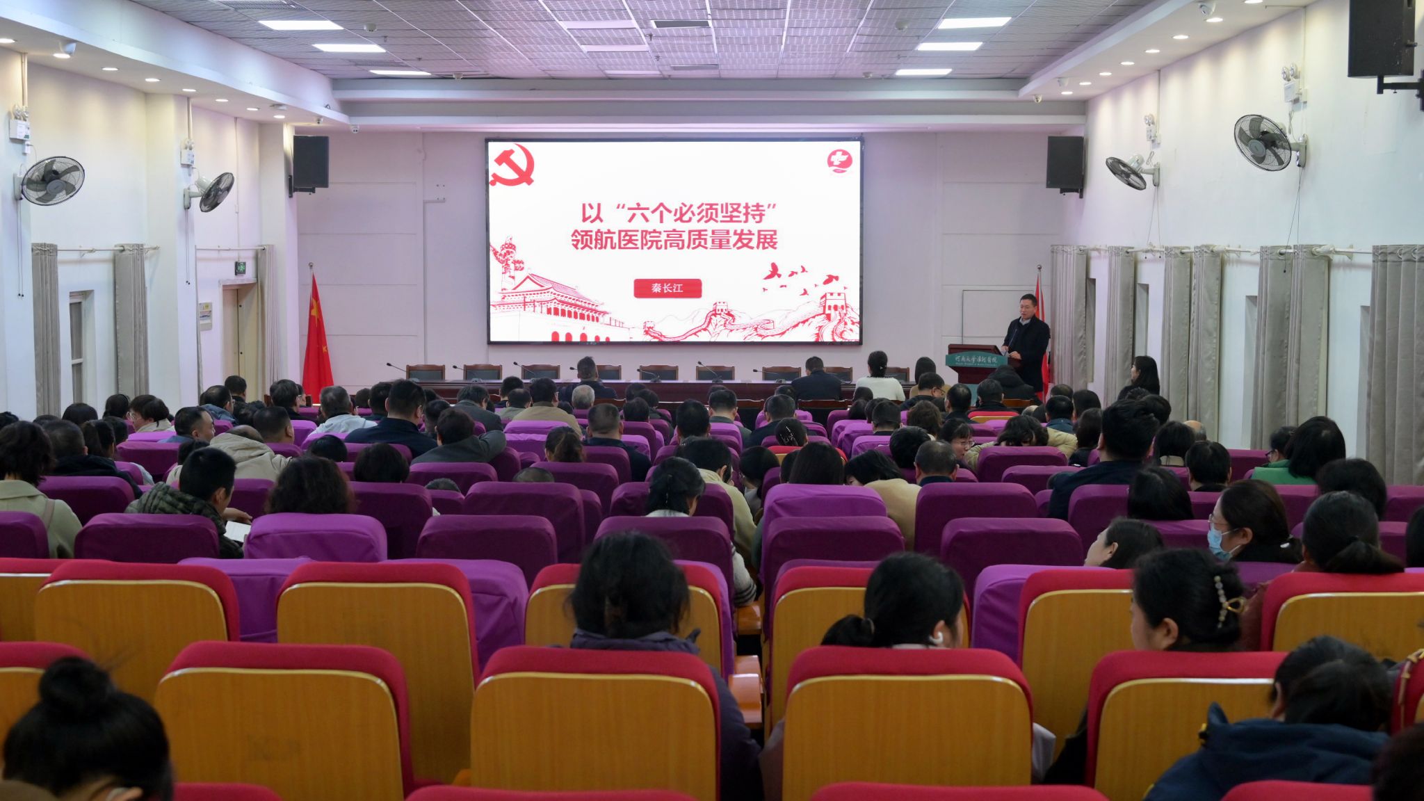围绕“六个必须坚持”,秦长江结合医院发展现状与未来规划,从六个方面提出具体要求:一是坚持人民至上,凝聚发展共识。要始终把患者需求放在首位,持续优化就医流程、提升服务质量、改善就医环境,强化医德医风建设,将患者和职工满意度纳入核心考核指标。推动医院从“以治病为中心”向“以人民健康为中心”转变,加强“防、筛、诊、治、康”全流程管理,尤其关注“一老一幼”等重点人群的健康服务。二是坚持自信自立,塑造发展灵魂。要坚定对我国医疗事业发展道路的信心,加快推动医疗服务模式转型,强化体系、技术、模式和管理创新,推动医院从规模扩张转向提质增效,从粗放管理转向精细化管理。三是坚持守正创新,划定发展边界。守正是根本,要坚持公立医院公益性,严守医疗质量安全底线;创新是动力,要积极推进中医药传承、中西医结合、AI辅助诊断、手术机器人、智慧医院建设等,以创新激发医院发展新动能。四是坚持问题导向,聚焦发展瓶颈。要增强问题意识,聚焦群众急难愁盼和医院发展中的实际问题,敢于直面、善于破解,通过持续改进推动医院管理水平和患者就医体验“双提升”。五是坚持系统观念,优化发展布局。医院是一个有机整体,要树立“一盘棋”思想,打破科室壁垒,推动医疗、护理、行政、后勤协同联动,实现资源优化配置和整体效能提升。六是坚持胸怀天下,提升发展境界。要跳出医院看发展,关注全球医疗趋势,强化人才与学科建设,培育高层次复合型人才,打造高水平临床重点专科,推动医教研协同和科技成果转化。