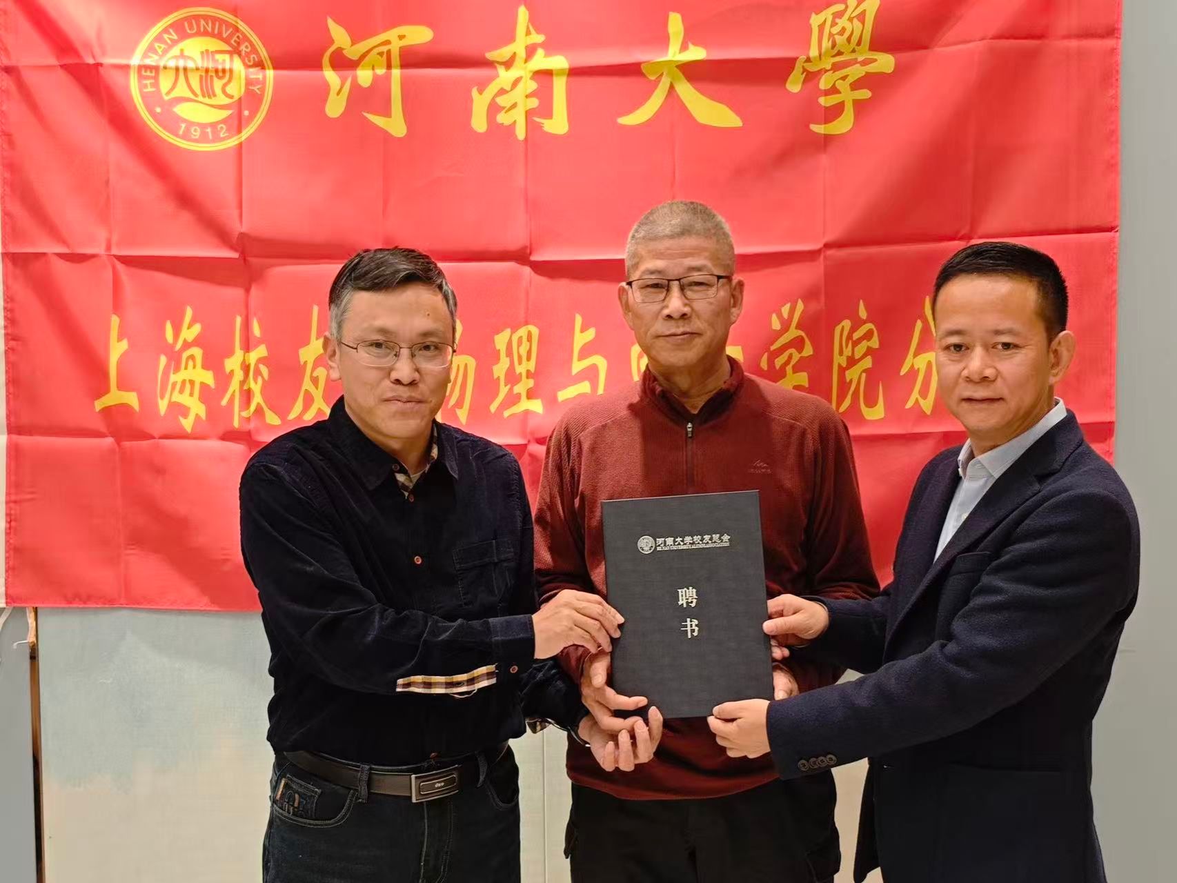 上一届分会会长李晓龙总结回顾了上届分会理事会在联络校友、搭建平台、服务母校等方面开展的工作与取得的成绩,并汇报了本次分会换届的筹备情况。经大会选举,1982级校友李晓龙任分会名誉会长,1981级校友王治国任分会会长,2003级校友张彦科任分会秘书长。上海校友会及学院领导为名誉会长及新一届理事成员颁发聘书,并向分会授予了“河南大学校友物理与电子分会”会旗。