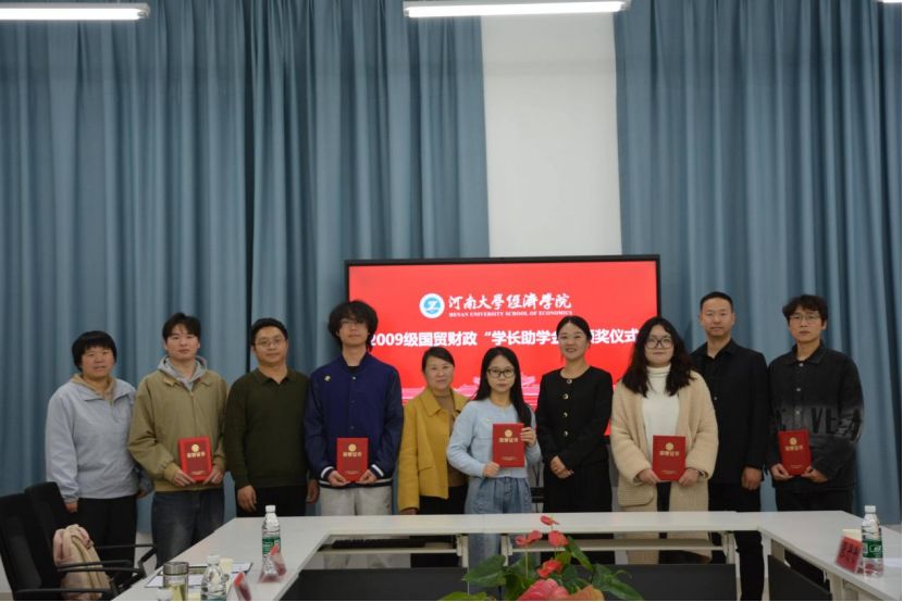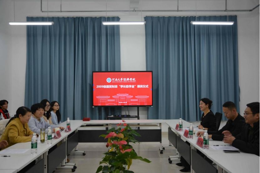 11月21日下午,经济学院在郑州龙子湖校区科创西楼会议室举行第三届2009级国贸财政“学长助学金”发放仪式暨校友论坛。经济学院副院长吴郁秋、团委负责人陈艳玲,2009级国贸、财政专业校友代表王奇、李少楠、张丹丹及在校学生代表共同参与。仪式由陈艳玲主持。