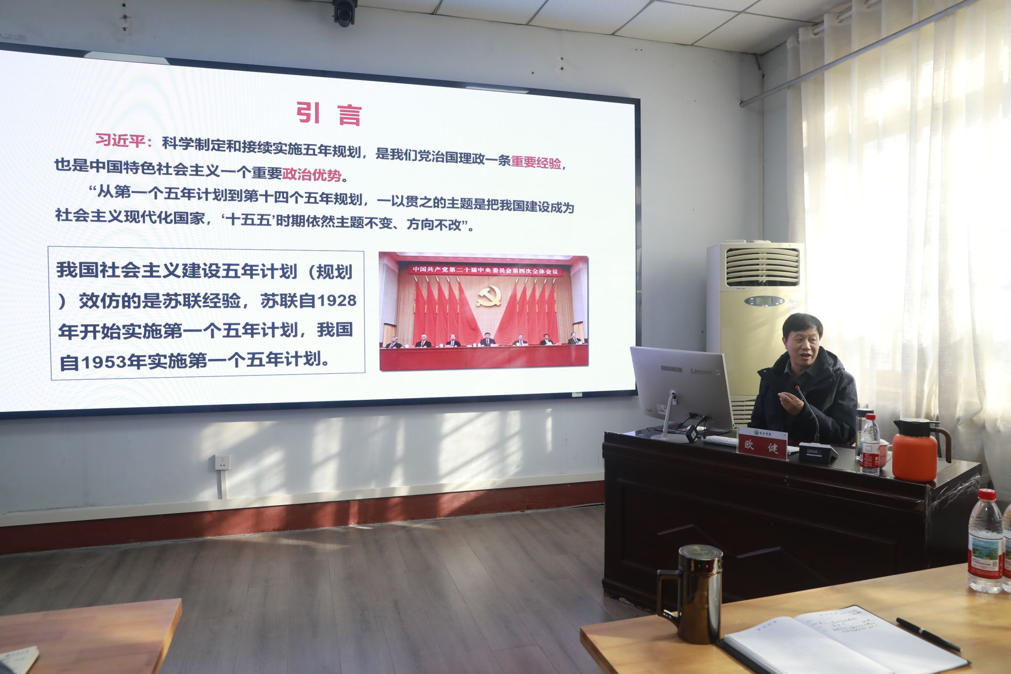 宣讲会上,欧健教授以“深学笃行党的二十届四中全会精神,接续推进中国式现代化”为主题,从习近平总书记关于党的二十届四中全会精神的重要论述切入,系统阐释了五年规划作为我们党治国理政的重要经验、中国特色社会主义的重要政治优势的深刻内涵。他结合我国从 “一五” 计划到“十四五”规划的发展历程,清晰梳理了中国式现代化的推进路径,通过详实的数据、生动的案例,有力驳斥了对历史的片面认知,全面展现了新时代以来我国在经济发展、科技创新、民生改善等领域取得的举世瞩目的辉煌成就。