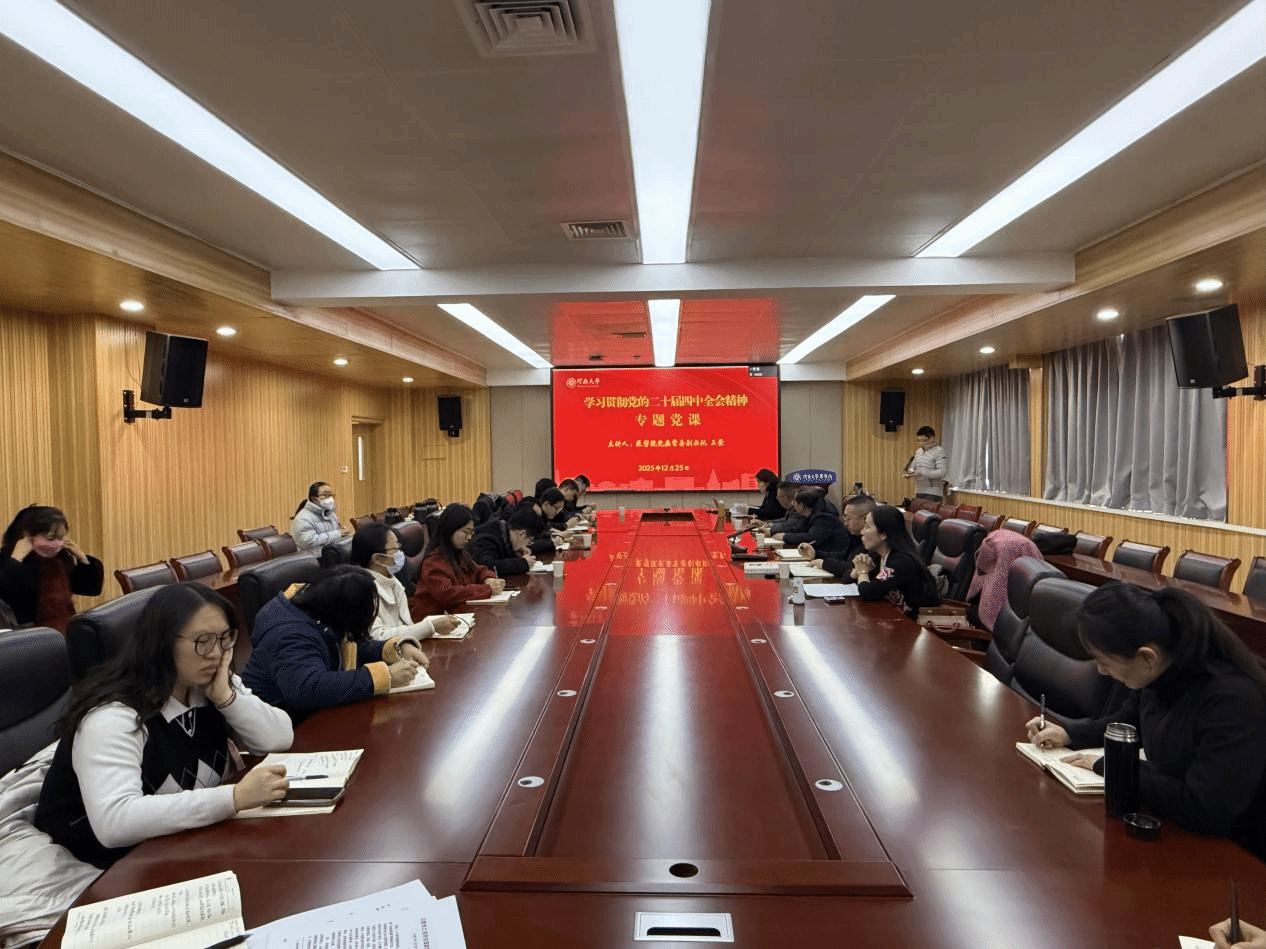 为深入学习贯彻党的二十届四中全会精神,按照学校开展学习贯彻党的二十届四中全会精神暨“中国共产党人精神谱系”宣讲巡讲活动要求,12月25日下午,医学院党委常务副书记王莹在金明校区曾宪梓楼2楼会议室以《习近平总书记关于河南工作的重要论述》为题讲授专题党课。医学院各基层党支部书记;教工第一党支部、教工第二党支部全体党员参加党课,党课由学生工作组组长、校医院党总支书记、院长陈丹丹主持。
