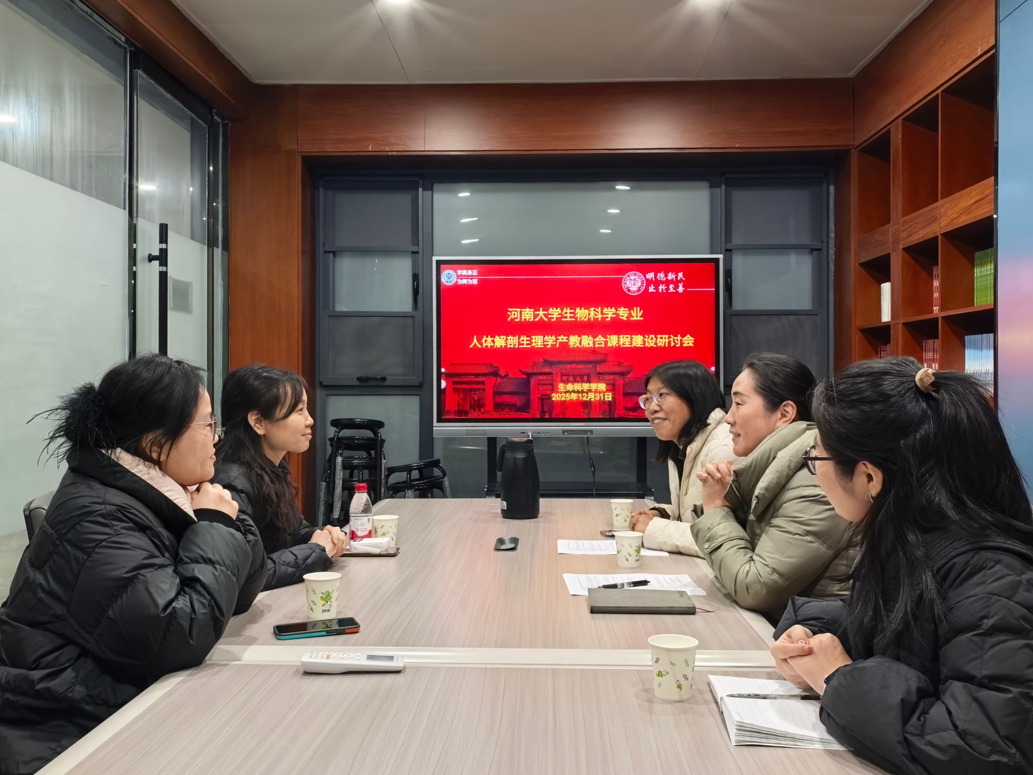 讲座结束后,课程团队与临床专家进行了专题研讨。课程负责人姚焕玲老师介绍了当前课程在教学改革中面临的挑战,强调应通过产教融合,推动课程从“知识讲授型”向“能力导向型”转变。两位临床专家结合医学教育与实践经验,提出应强化基础理论与临床应用的衔接,构建“结构—功能—应用”一体化的认知框架。与会人员围绕如何将真实案例、疾病防治与公共健康理念融入教学展开热烈讨论,一致认为应通过案例教学、情境模拟等方式,提升学生的课堂参与度与综合素养,培养其科学思维与社会责任感。双方就今后的互动与合作达成初步意向。