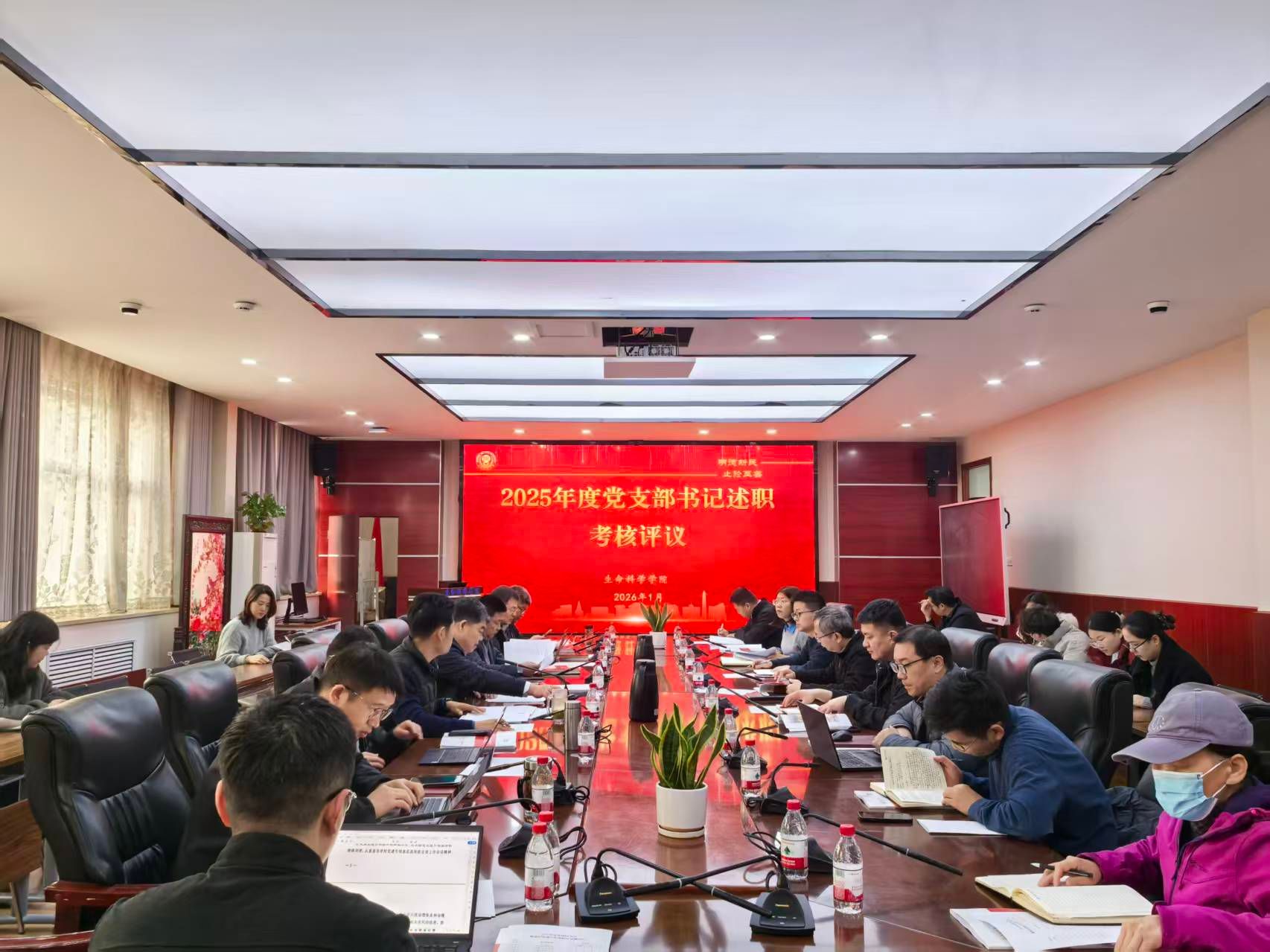为全面加强基层党组织建设,增强党组织凝聚力和战斗力,1月16日,生命科学学院在B201会议室召开党委理论学习中心组(扩大)会议暨2025年度党支部书记述职评议,学院党委委员及党支部书记参加会议。会议由学院党委书记梁建忠主持。