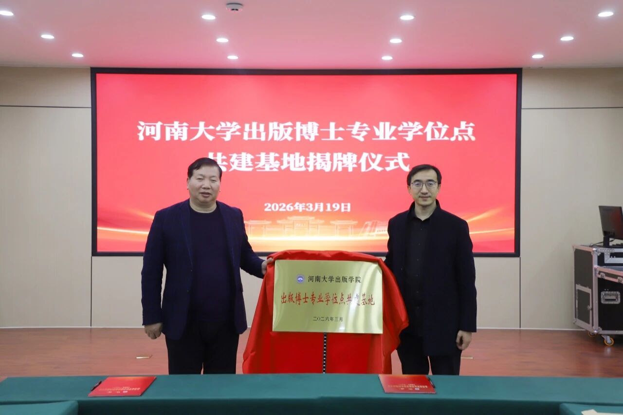 会议期间,双方共同签署了“河南大学新闻与传播学院实习实践教育基地”合作协议并揭牌,并共同为“河南大学出版学院出版博士专业学位点共建基地”揭牌。两个基地的正式落地,标志着双方在协同育人机制建设与高层次出版人才培养方面迈入深度融合、协同发展的新阶段。双方将以基地建设为纽带,持续推动资源共享、平台共建、人才共育,在更高起点上实现优势互补、协同创新,共同为学校“双一流”建设和出版学科高质量发展注入强劲动能,为服务国家文化强国战略贡献河大智慧与出版力量。