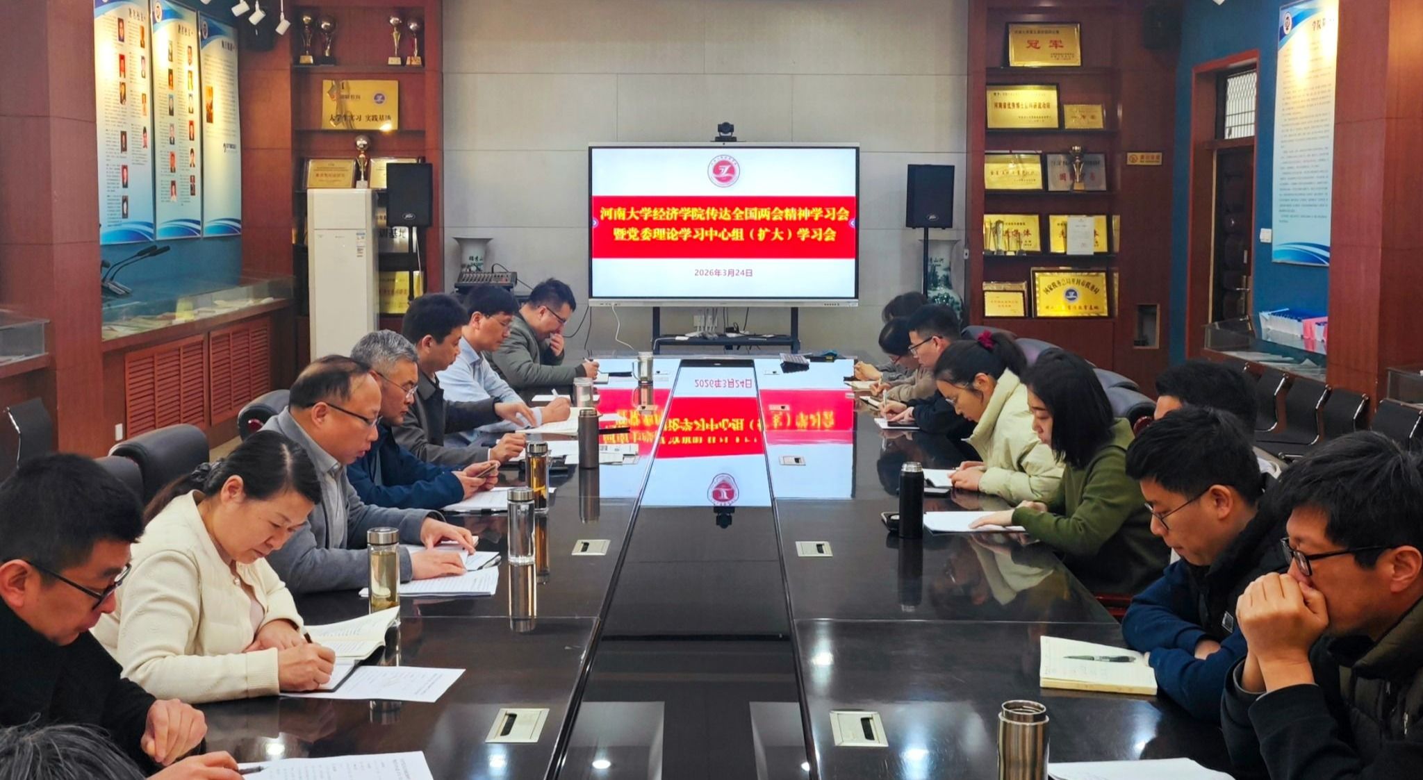 3月24日上午,经济学院在一楼院史馆召开党委理论学习中心组(扩大)学习会议,传达学习2026年全国两会精神,深入学习习近平总书记关于树立和践行正确政绩观的重要论述。学院全体领导班子成员、组织员,党支部书记、系主任及各科室负责人参加会议。会议由学院党委副书记翟志远主持。
