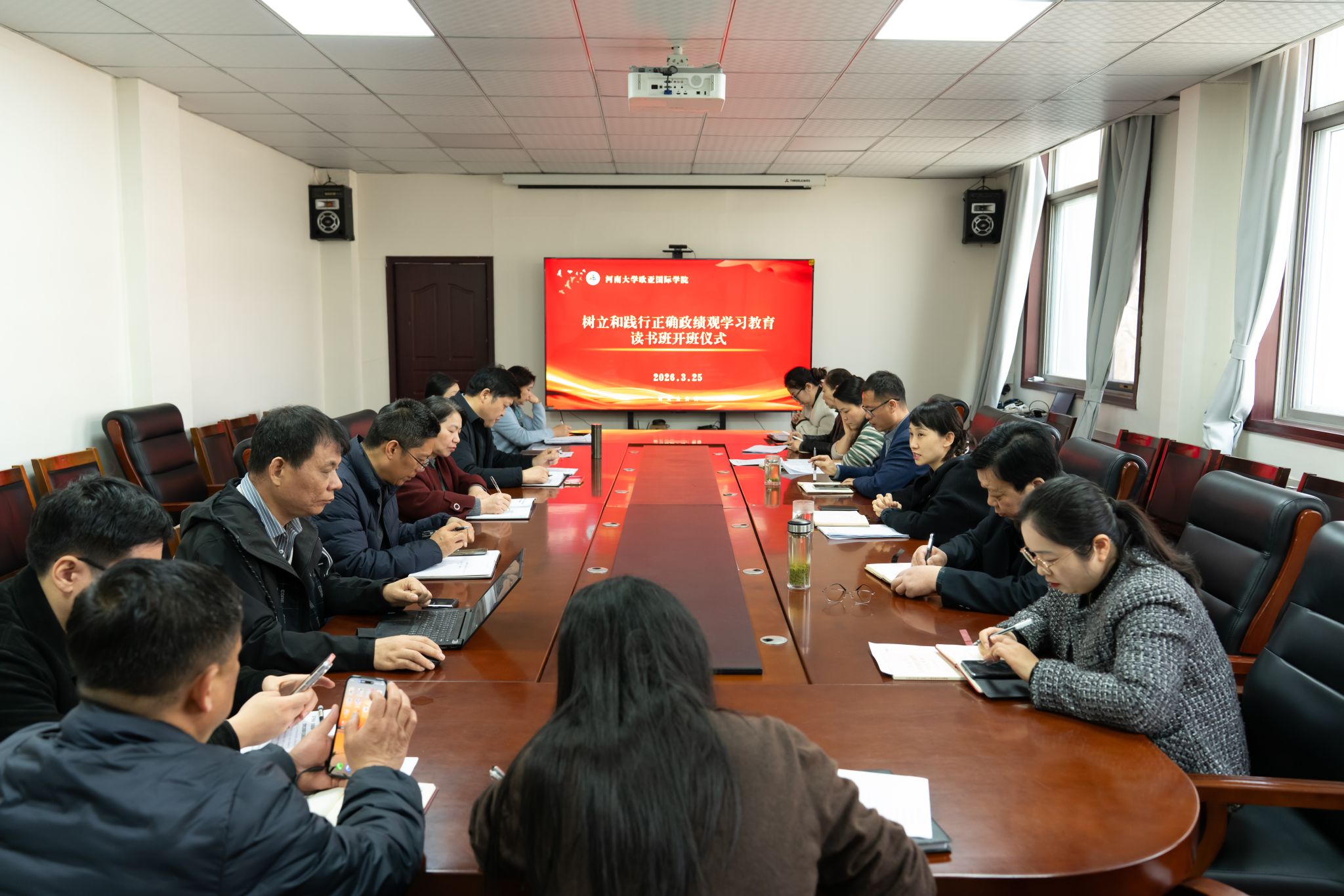 3月25日上午,读书班开班仪式在学院309会议室举行,院党委书记刘佳明主持。会前,她传达学校“传达全国两会精神学习会暨党委理论学习中心组(扩大)学习会”会议精神。她表示,政绩观是党员干部的“总开关”,对于学院全体教师而言,正确的政绩观就是坚守立德树人根本任务,要把培养兼具国际视野与家国情怀的国际化、复合型人才作为首要政绩,把服务师生成长、推动学院发展作为核心追求,坚决摒弃形式主义、官僚主义。希望全体学员珍惜学习机会,静下心来读原文、悟原理,坚持学思用贯通、知信行统一,切实把学习成果转化为干事创业的实际行动。会议对读书班学习提出三点要求:一是深化学习领悟,将两会精神与学习教育紧密结合,落实学校要求,坚持学用结合、知行合一,做好学习成果转化;二是聚焦主责主业,一线教师、辅导员、行政管理人员各司其职、协同发力,抓实学生培养,强化服务意识,推动任务落地;三是强化责任担当,梳理工作思路、细化任务清单,以“想一件、做一件、成一件”的作风助力学院和学校高质量发展。各党支部书记要落实学习方案,全体学员优先投入学习,确保学习实效。