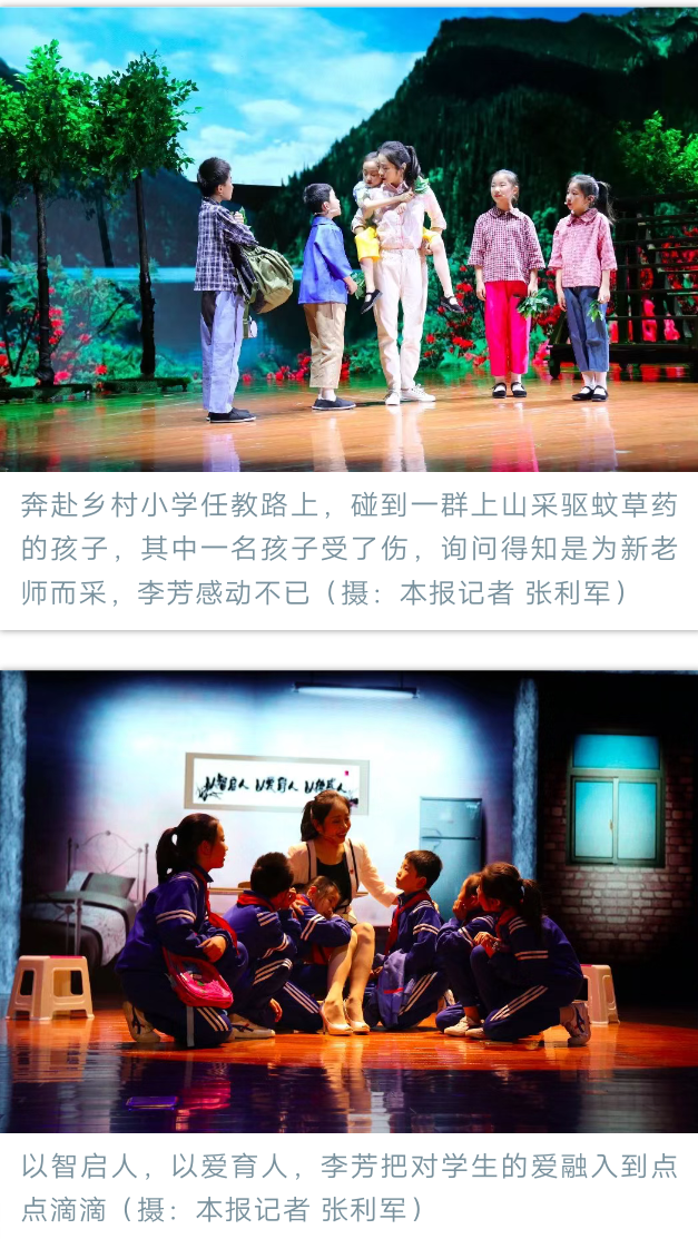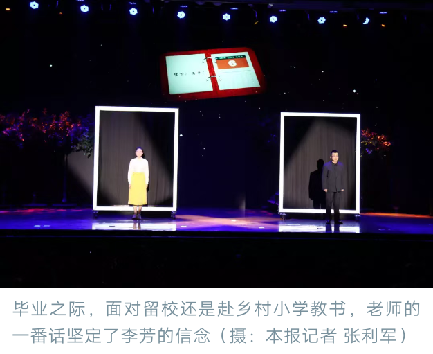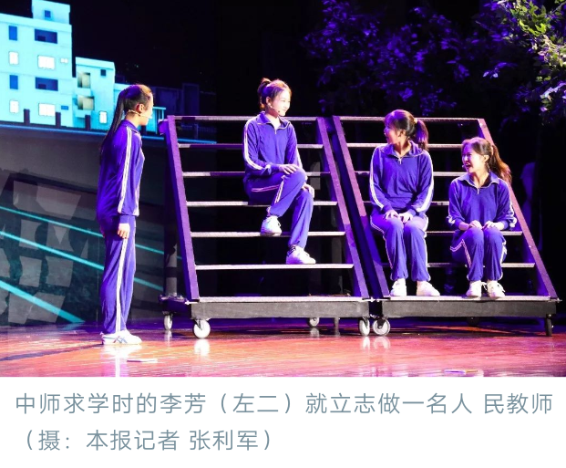 “2018年,是李芳参加工作的第29个年头,站在讲台上的她,依然像刚参加工作时那样充满热情。她渴望成为点点繁星中最平凡的一颗,一刹那的抉择却让她成了夜空中最亮的那一颗,而她的英勇事迹也将被永远地镌刻在星空之下……”11月28日,以全国优秀教师李芳先进事迹为原型改编的舞台剧《星空》,在教育部进行演出。