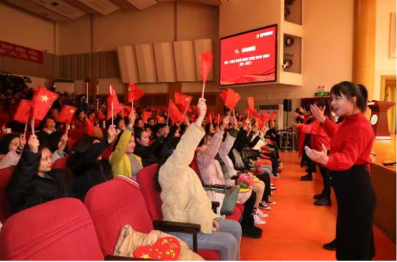 “南湖的船啊——党的摇篮!历史将从你这里揭开新篇——”悠悠的歌声响起,全场一起重温那开天辟地敢为人先的“红船精神”,一起回到了那个风云激荡的峥嵘岁月;《十送红军》歌曲悠扬、深情款款,《七律•长征》雄健有力、气势恢宏,展现了高涨的抗日热情和坚定的军民一心,曲调欢快、积极向上的《南泥湾》更是反映了人民蓬勃的生产建设热情;“风在吼,马在叫,黄河在咆哮”慷慨激昂、气势雄壮的《保卫黄河》展现了中华民族攻坚克难、勇往直前的不朽力量。唢呐声响彻大厅催人振奋,手风琴曲调律动、洋溢青春,大合唱凝聚人心、慷慨激昂……整场晚会在听党课、唱党歌、忆党史中交错,不仅为大家带来一场难得的视听盛宴,更是一次珍贵的精神洗礼。现场观众热情澎湃,掌声经久不息。