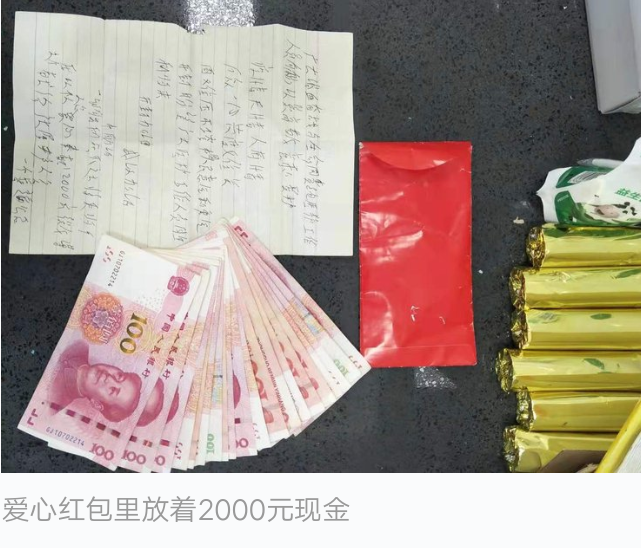 在这个爱心红包里,放着2000元现金,里面的信上写着:“广大浴血奋战与生命同赛跑的医护工作人员,致以崇高敬意和爱护。疫情无情人有情,万众一心共渡难关。困难压不垮中国人民的意志和勇气。开封盼望广大医护工作人员胜利归来!开封加油!武汉加油!中国加油!一切胜利在不远将来归于人民。我以个人爱心奉献2000元微薄力量,献给广大医护人员。”落款是“一个普通市民”。