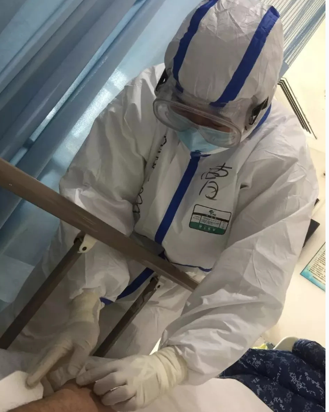 经过几天的接触,病房里的病人对我们医疗队员冒着生命危险前往武汉支援非常感动,尤其是我们的队员不仅对病人认真治疗,而且像家人和朋友一样在生活上照顾、陪伴,特别是一些病人心理负担很重,对疾病存有恐惧,情绪焦虑,我们的医疗队员对其进行耐心地心理疏导,为他们介绍病房外面的情况,陪他们聊天,帮助他们树立战胜疾病的信心和决心。