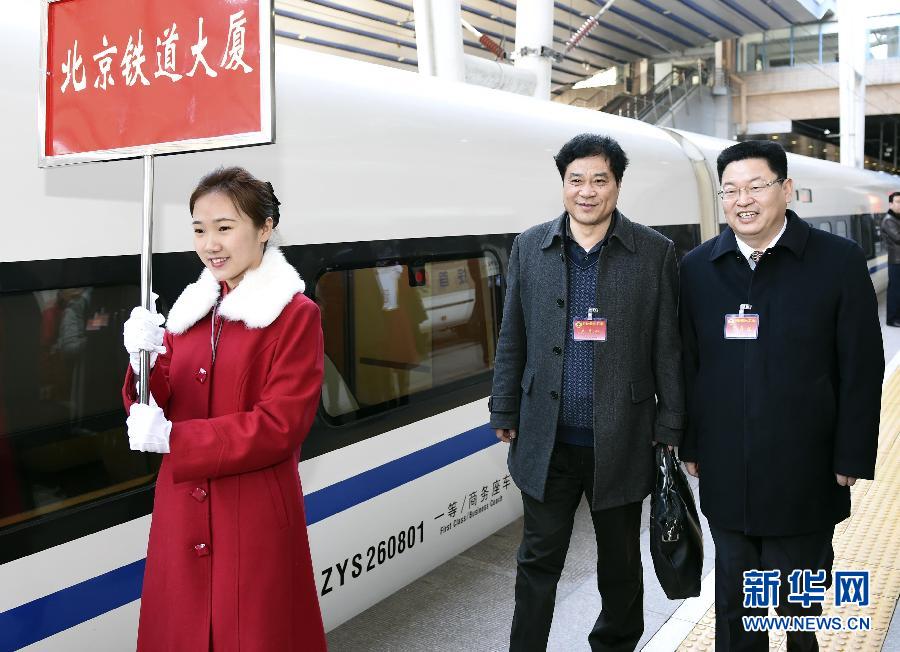 3月1日,来自河南省的全国政协委员抵达北京,出席全国政协十二届三次会议。新华社记者 张铎 摄