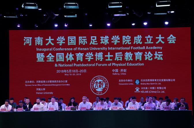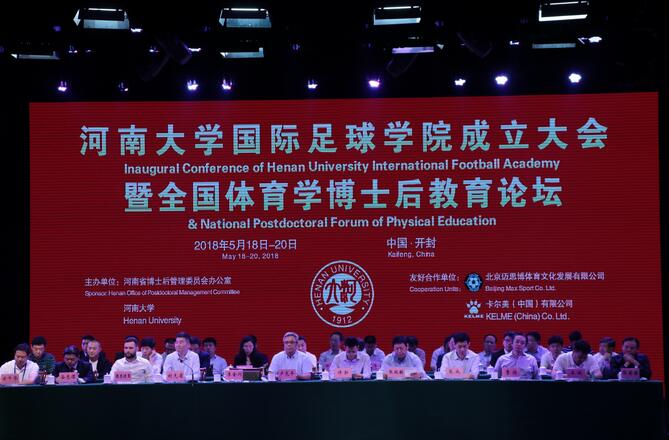 5月19日上午,河南大学国际足球学院成立大会暨全国体育学博士后教育论坛在明伦校区大礼堂隆重举行。