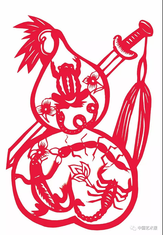 剪纸作为我国民间喜闻乐见的具有悠久历史和独特韵味的原始造型艺术,在传统端午节俗活动中起着重要的作用,有着独特的涵义,是端午节习俗活动中必不可少的重要元素。历代典籍对此多有记载:
