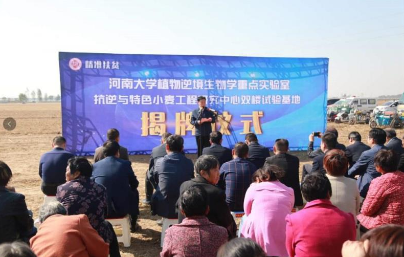 科技扶贫、产业扶贫是促进贫困地区发展、增加贫困户收入的有效途径,是扶贫开发的战略重点和重要任务。2017年,河南大学生物学成功入选“双一流”建设学科。为了把科技的力量用在扶贫一线,2018年,精准扶贫项目——河大植物逆境生物学重点实验室抗逆与特色小麦工程研究中心特色小麦试验基地在双楼村落地,而此次新揭牌的河南大学特色小麦试验基地正是坐落于此 。 祥符区相关负责人丁向东表示:“特色小麦产业化的实现,有利于调整双楼村农业种植结构,是产业扶贫政策的落实,发展特色产业,实现农户增产增收,助力脱贫攻坚。”