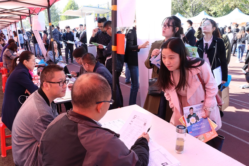 看展板、扫二维码、询问相关人员具体招聘要求……当天上午8点,河南大学明伦校区东操场上就已经有不少学生。“比起优厚的薪资待遇,我更想找一份自己喜欢的工作。”环境与规划学院2016级研究生秦冰手里拿着厚厚一沓教育培训类招聘单位宣传页说道:“因为我本科读的是师范类专业,再加上自己也想从事教育工作,所以教师是我的第一选择。”