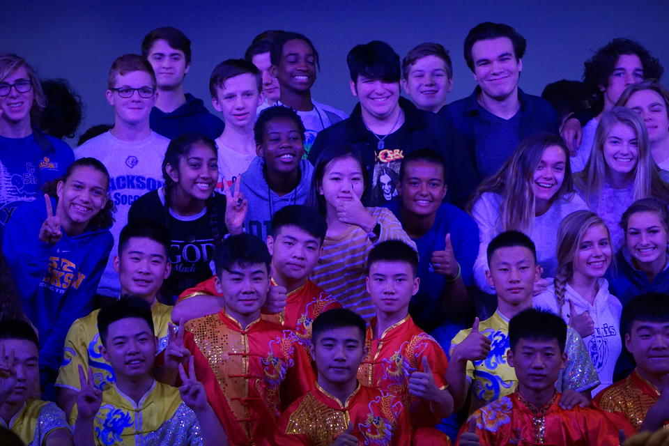 在当晚演出之前,10月26日8点和13时30分,武林汉韵演出团还受邀分别走进阿克伦两所优质中学—杰克逊中学、高地中学,为800多名高中生进行了表演,同样大受欢迎。趁着返回教室上课之前,两所学校的孩子把嵩山少林武术职业学院参与表演的学生团团围住,竞相拍照留念。“从酒店出发时天还是黑的,加上两场表演连得又比较近,确实有些累,但能交到这么多新朋友,值了。“既负责节目音乐视频串联又司职棍术的霍小飞很有感慨。