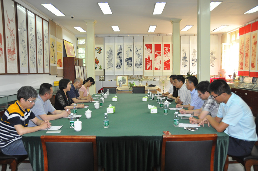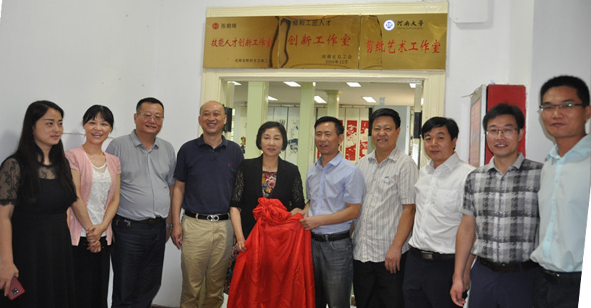 文化产业与旅游管理学院书记许俊峰对校工会一贯支持传统文化、支持文化产业与旅游管理学院发展表示了感谢。院长程遂营介绍了文化与产业学院的学科建设情况,他表示,张朝晖老师 “劳模创新工作室”已经成为学校的一张名片,文化产业与旅游管理学院一定会把这张名片做大做好,使之成为弘扬传统文化、展示河大风采的窗口。张朝晖把工作室的建设从无到有,再到如今兼具教学、展示、创作于一体的多功能工作室建设、发展情况做了说明,他表示一定不会辜负学校和学院的期望,努力做好传统文化艺术的传承与发展。