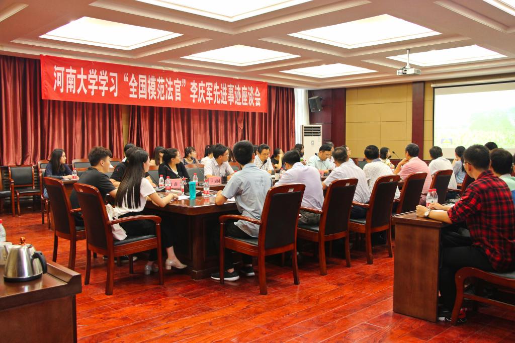 “1986年河南大学毕业,授予学士学位;1989年考入西南政法大学,攻读民事诉讼法硕士学位;1993年考入河南高院,一干就是25年;直到2018年9月28日,他永远离开了我们。”法学院党委副书记吴瑷瑷动情地说道,眼神里充满敬仰和崇敬之情。这是9月10日下午我校学习“全国模范法官”李庆军先进事迹座谈会上的一幕,吴瑷瑷这场充满感情的发言是在观看了《新闻联播》《河南新闻联播》有关报道之后有感而发。故事的主人翁便是“全国模范法官”“河南优秀共产党员”,他是大山里走出的法官,更是“深深地烙上河南大学印记”的八二级校友——李庆军。