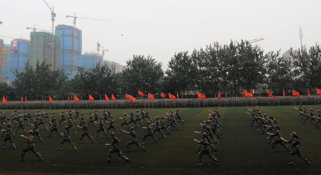 庄严的国歌声后,在张照成大校的指挥下,擒敌拳表演及分列式正式开始。参与武术表演的学生们喊着整齐的口号,动作规范,拳拳生风,打出了河大学子的精神与气势。在慷慨激昂的进行曲中,新生们身着整齐的军装,跟随着新生军训团团旗的指引,迈着矫健的步伐,气宇轩昂,飒爽的英姿展示了为期半月的训练成果,坚毅的面孔透漏出新生们不怕困难、不惧挑战的自信,炯炯有神的双眼闪烁着“恰同学少年,风华正茂”的神采。一声声嘹亮的口号,直冲云霄,展现了铁塔学子蓬勃向上的良好精神风貌。