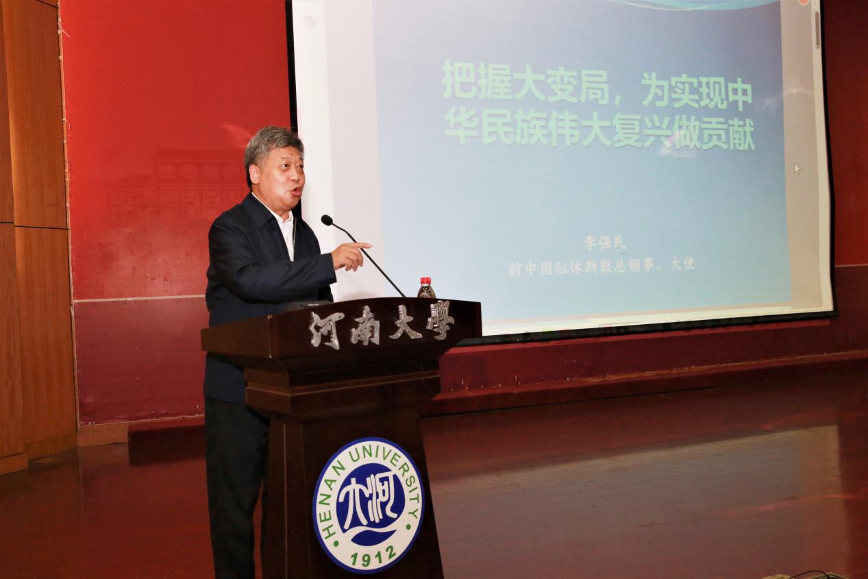 李强民通过当今国际力量对比之变、国际体系之变、全球进程之变、科技创新之变、思潮之变等几个方面,阐述了面临“百年之大变局”、机遇和挑战并存背景下新时代中国外交的使命和担当,激励广大青年学生努力学习,全面了解世界和中国发展大势,认清肩负的时代责任和历史使命,为实现中华民族伟大复兴中国梦贡献自己的青春和力量。