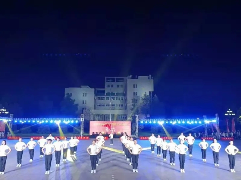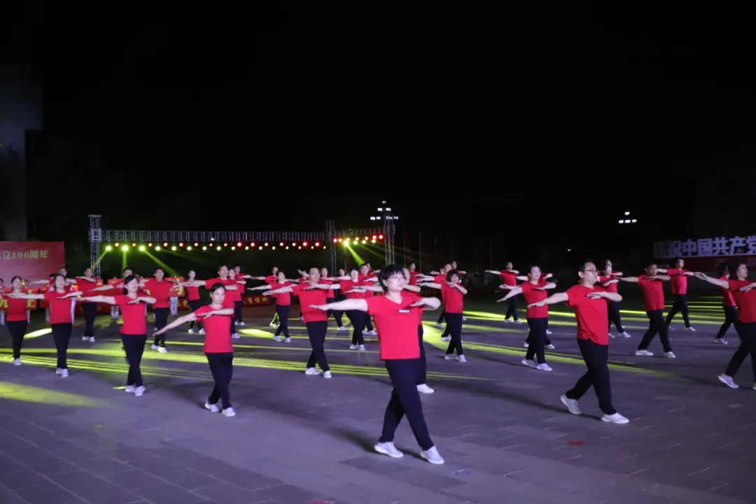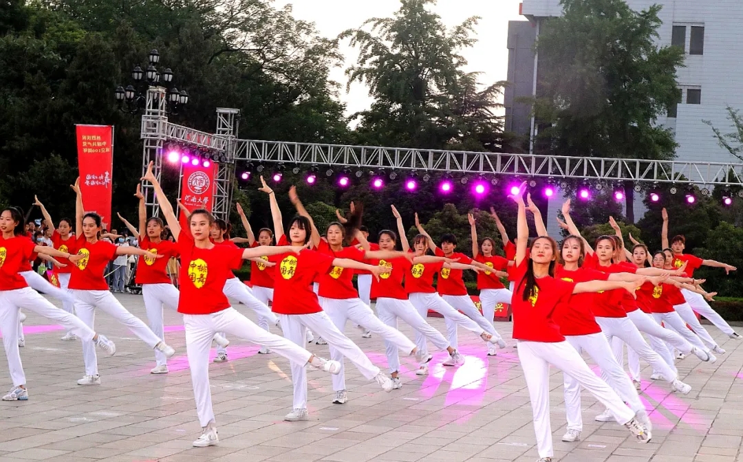 初夏的夜晚,炎热渐渐褪去,微风徐徐吹来。我校明伦校区大礼堂广场上,千人舞动,华灯闪烁,喜乐回旋,汇聚成一片光与热的海洋。古朴的校园建筑与活力四射的健身操舞交相辉映,交织绘就成一幅洋溢着幸福与欢乐、洋溢着建设“双一流”的激情、洋溢着团结奋进的河大精神、洋溢着浓浓爱国爱党情的绚丽画面。河南大学教职工用这样一种特别的方式致敬党的百岁生日,表达投身教育、热爱祖国的无限热情。