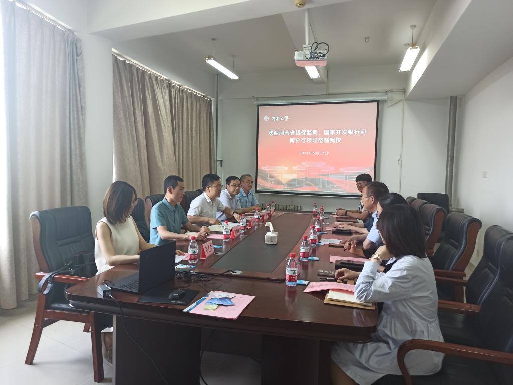 5月27日,中国银行保险监督管理委员会河南省监管局政策银行处处长李新军、 国家开发银行河南省分行法律合规处处长方明等一行五人来校,就国家助学贷款管理工作进行深入交流。校学生处处长、学生资助管理中心主任王友成、学生处相关人员及部分学院辅导员老师参加座谈。