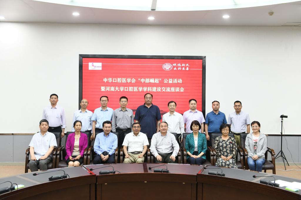 2021年6月2日至3日,中华口腔医学会“中部崛起”公益活动教学帮扶示范教学活动专家组走进河南大学口腔医学院。中华口腔医学会副会长、首都医科大学副校长、中国科学院院士王松灵教授、中华口腔医学会秘书长岳林教授、副秘书长刘宏伟教授、北京大学口腔医学院党委副书记、纪委书记张汉平,北京大学口腔医学院主任医师、博士生导师张益教授,首都医科大学北京儿童医院口腔科主任医师、特级专家朱红教授,河南省口腔医学会会长曹选平教授,中华口腔医学会继续教育部副部长葛凤庆等10多位国内知名口腔医学专家莅临河南大学,就河南大学口腔医学教育和学科建设把脉问诊、帮扶指导。与河南大学校长宋纯鹏,河南大学副校长、医学院党委书记孙君键,以及医学院、口腔医学院主要负责人等齐聚一堂。