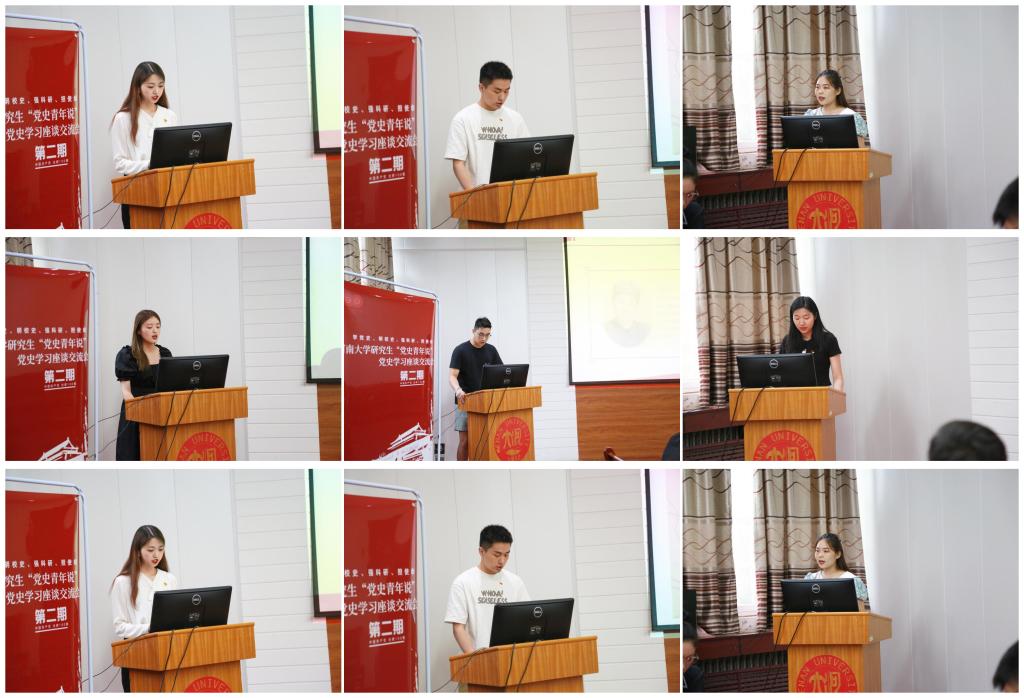 来自各学院的研究生代表以及校级研究生组织代表围绕不同的主题进行了党史汇报交流。