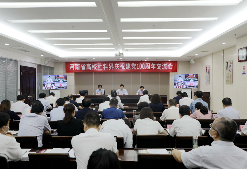 6月25日上午,河南省高校社科界庆祝建党100周年交流会召开。省委教育工作领导小组秘书组组长、教育厅党组书记、厅长郑邦山出席会议并讲话。会议由省委高校工委专职委员何秀敏主持,省教育厅二级巡视员董学胜出席交流会。我校党委常委、副校长孙君健、河南大学学报主编李伟昉及人文社科研究院负责人应邀参加会议,并做大会发言。学校党委常委、副校长谭贞、许绍康、阚云超、杨中华、孙功奇,校党委常委、纪委书记、监察专员杨朝阳,总会计师韩守富及人文社科研究院和科学技术研究全体工作人员、马克思主义学院全体班子成员、文学院与科研机构等17个单位负责人参加我校分会场。