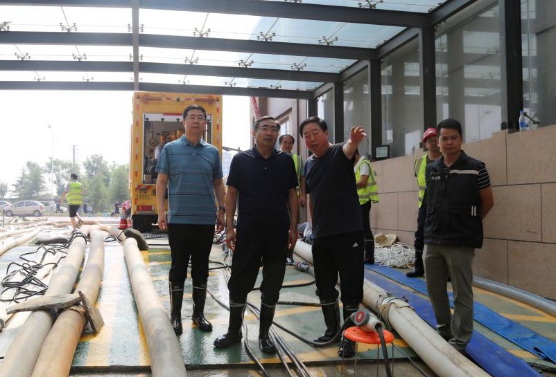 宋纯鹏一行首先来到明德园地下车库进出口、小区内排水作业处,认真查看各点位的排水作业情况,详细了解目前地下车库排水进度、排水设备协调、小区电力设备运行、住户生活保障等情况。据现场工作人员介绍,在7月24日已有中建八局、义煤集团、中铁十八局、山东日照鑫锐救援等12家单位提供的40余台排水设备投入使用的基础上,7月25日又新增一台从广东调来的大型抽水设备“龙吸水”,预期将在7月26日中午12点前完成地下车库排水,并尽快推进场地清淤、设备排查和消杀防疫等工作。明德园小区目前现有住户将近200户,每天通过物业微信群发送物资领取信息;特别困难住户(家里只有老人或孩子特别需要照顾)15户,由物业送生活必须品上门,保证现有住户的干净饮用水和水果食物等。地下车库车辆已及时抢救撤离350多辆,剩余因电话或短信通知,但因个人原因未能到达现场的受灾车辆在50辆左右。地下车库清理后,人保财险将对受损车辆进行登记,统一办理业务。