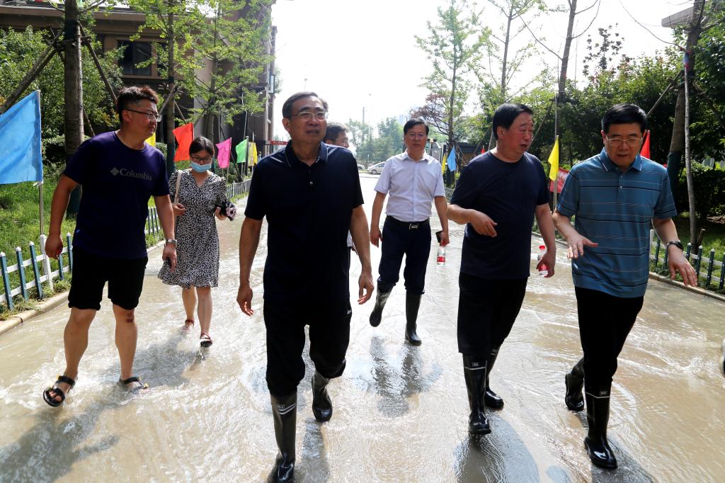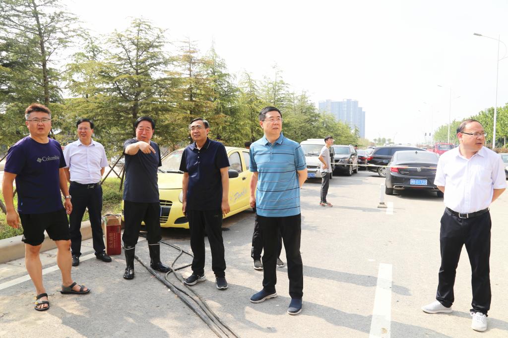 7月25日上午,继学校主要领导多次赴郑州校区实地督导检查之后,校长宋纯鹏再一次带队赴郑州校区,调研郑州校区建设情况并现场检查指导防汛抢险救灾工作,看望慰问坚守在建筑工地和防汛一线的工作人员。校党委副书记、副校长刘志军,校党委常委、副校长许绍康和校党委宣传部、校长办公室、龙子湖校区建设与管理委员会、郑州校区综合管理办公室及河大资产经营有限公司相关负责人陪同调研检查。