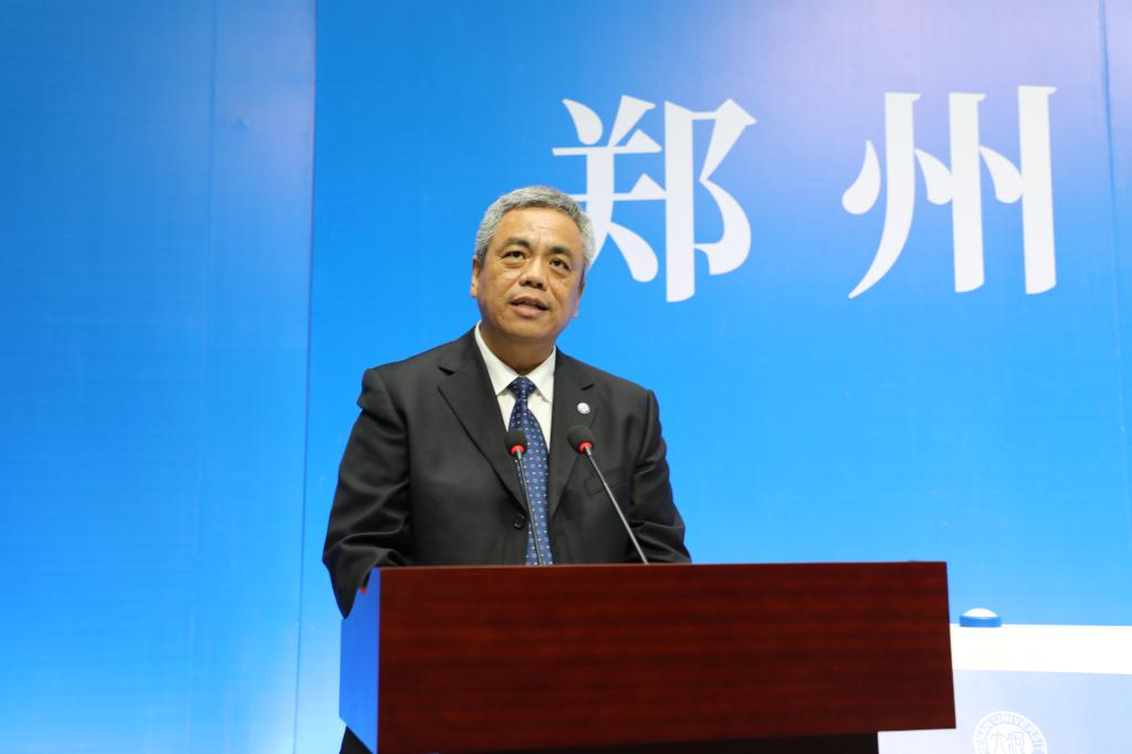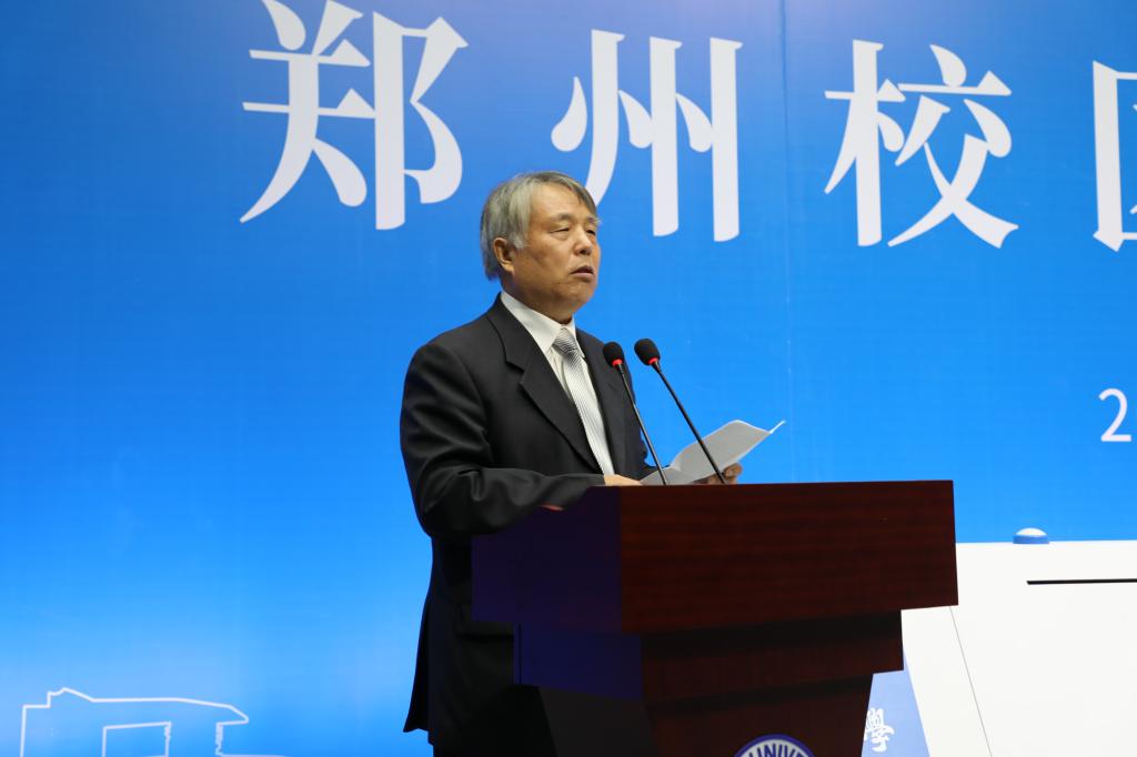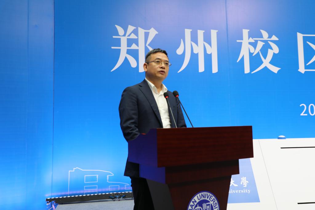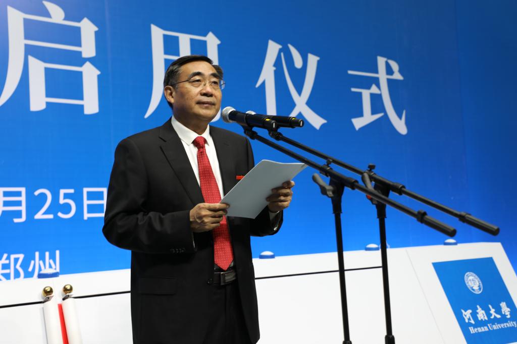 校长宋纯鹏致辞,向参加仪式的领导和嘉宾表示热烈欢迎,向长期以来关心支持河南大学建设发展的各界朋友表示衷心感谢,对付出艰辛努力的校区建设者表示崇高敬意,对首批入驻的全体师生表示热烈祝贺。宋纯鹏用“四个篇章”,即“河大之思——郑州校区构筑”“河大之魂——建筑和精神延续”“河大之幸——一流大学梦想”“河大之感恩——机遇和挑战”,将我校郑州校区的构筑谋划、建筑设计、面临的机遇和挑战、未来的发展谋划等情况娓娓道来。宋纯鹏表示,河南大学郑州校区的启用,标志着学校已经融入蓬勃向上的郑州大都市圈,立足这片充满生机与活力的沃土,河南大学将按照“中国特色、世界一流、中原风格”发展道路,坚持立德树人,不断推进综合性研究型世界一流大学建设。一个朝气蓬勃、不断发展的河南大学,必将为现代化河南和全国创新高地建设提供重要支撑,必将为中国高等教育事业高质量发展做出积极探索、积累成功经验。