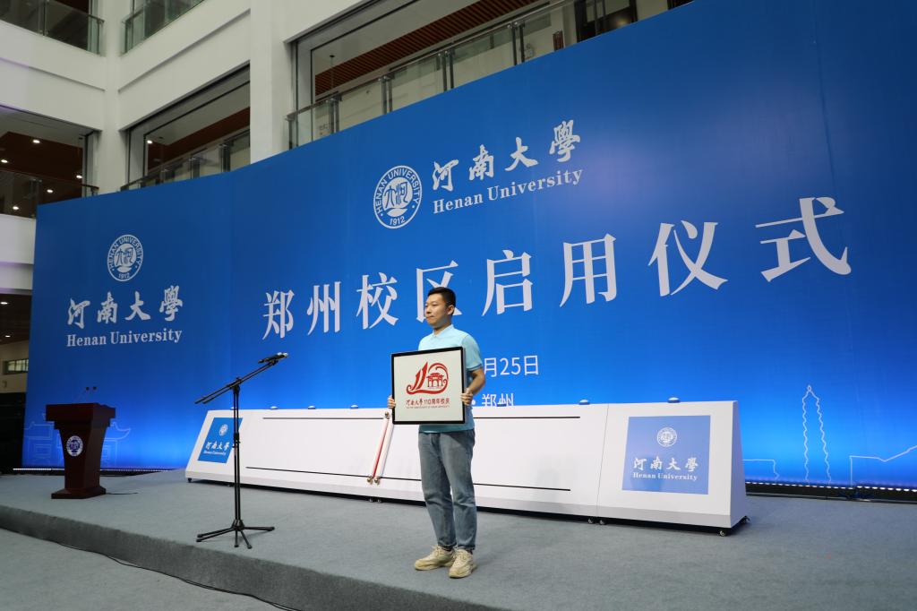 校友代表但斌发言,表达了再次回到母校,见证郑州校区启用的重要历史时刻的喜悦与激动心情,并代表历届校友,对学校领导师长的关怀和支持表示衷心感谢。“为什么我的眼里常含泪水,因为我对这土地爱得深沉。”但斌的话语中饱含对母校河大的热爱和感恩,他表示,自己能在毕业31年后为母校的发展尽绵薄之力,并见证其蝶变时刻,感到无比荣光。同时祝愿母校河大再谱新篇、再创辉煌,希望代代河大学子奋勇向前、不负韶华、不负时代。