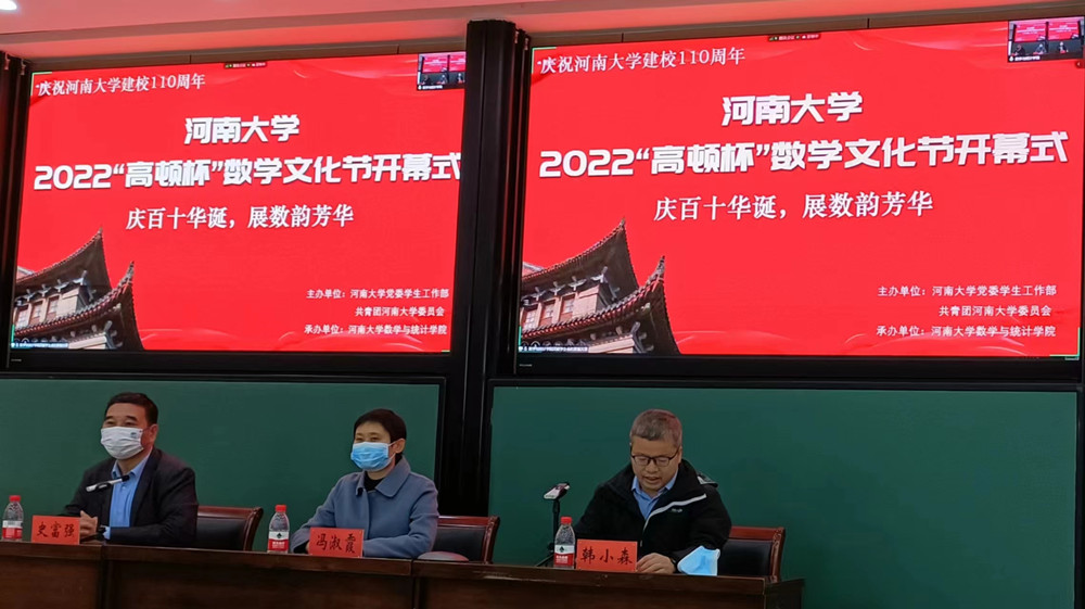 正值河南大学建校110周年之际,为了让学生感受数学之美、数学之用,11月26日上午,由校党委学生工作部、校团委主办,数学与统计学院承办的第十四届河南大学2022“高顿杯”数学文化节开幕式举行。
