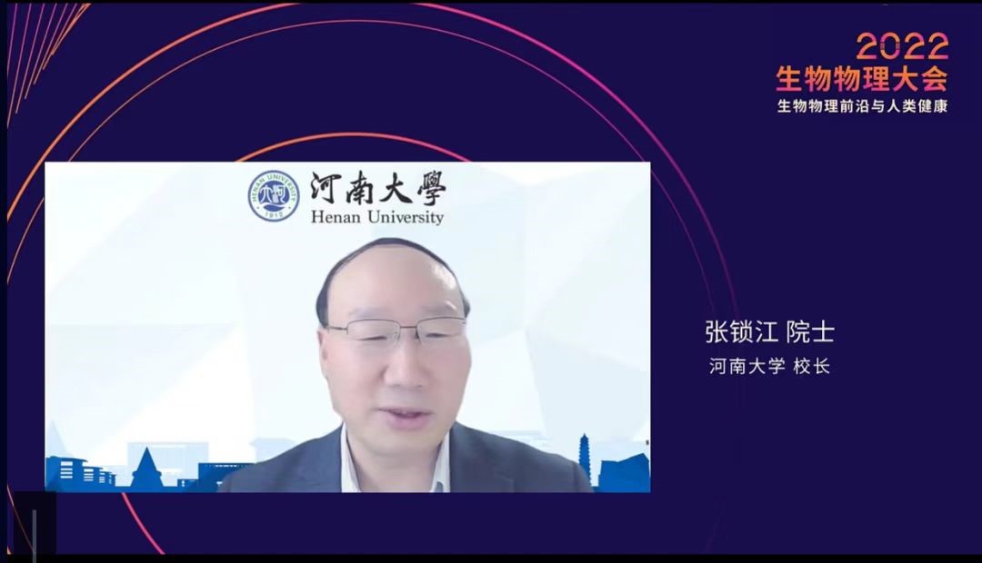 12月2-4日,由中国生物物理学会主办,河南大学和河南省生物物理学会承办的2022年生物物理学大会以线上方式举行。本次会议的主题为“生物物理前沿与人类健康”。中国科学院院士、河南大学校长张锁江和中国生物物理学会理事长徐涛院士出席开幕式并致辞,开幕式由中国生物物理学会副理事长兼秘书长张宏研究员主持。
