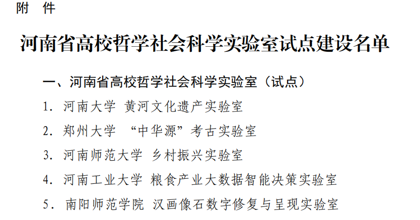 近日,中共河南省委教育工委和河南省教育厅联合公布了河南省高校哲学社会科学实验室试点建设名单(豫教工委〔2022〕145号),首批支持建设5个试点实验室、5个培育实验室,我校申报的黄河文化遗产实验室成功获批试点实验室。该实验室的获批标志着我校在文理交叉融合方面取得突破和在文科实验室建设方面取得新进展。