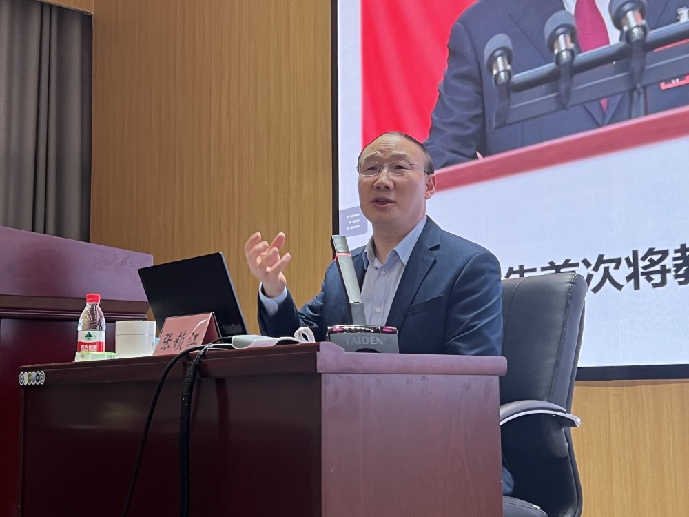12月13日上午,河南省“万名中小学校长培训计划”第一期“名家讲座”第三十二讲举行。河南大学校长张锁江院士在河南大学郑州龙子湖校区九章学堂102报告厅为全体学员作了题为《新时代 新要求——教育的使命与担当》的专题讲座。
