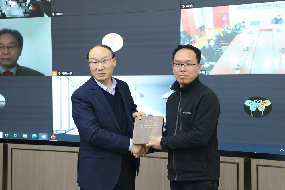 随后,张锁江为出席线下会议的校友代表中科院深圳理工大学教授、国家杰出青年基金获得者薛冬峰,中科院兰州化学物理研究所研究员、国家优秀青年科学基金获得者李福伟颁发“河南大学化学化工学科建设指导委员会青年委员”聘书。