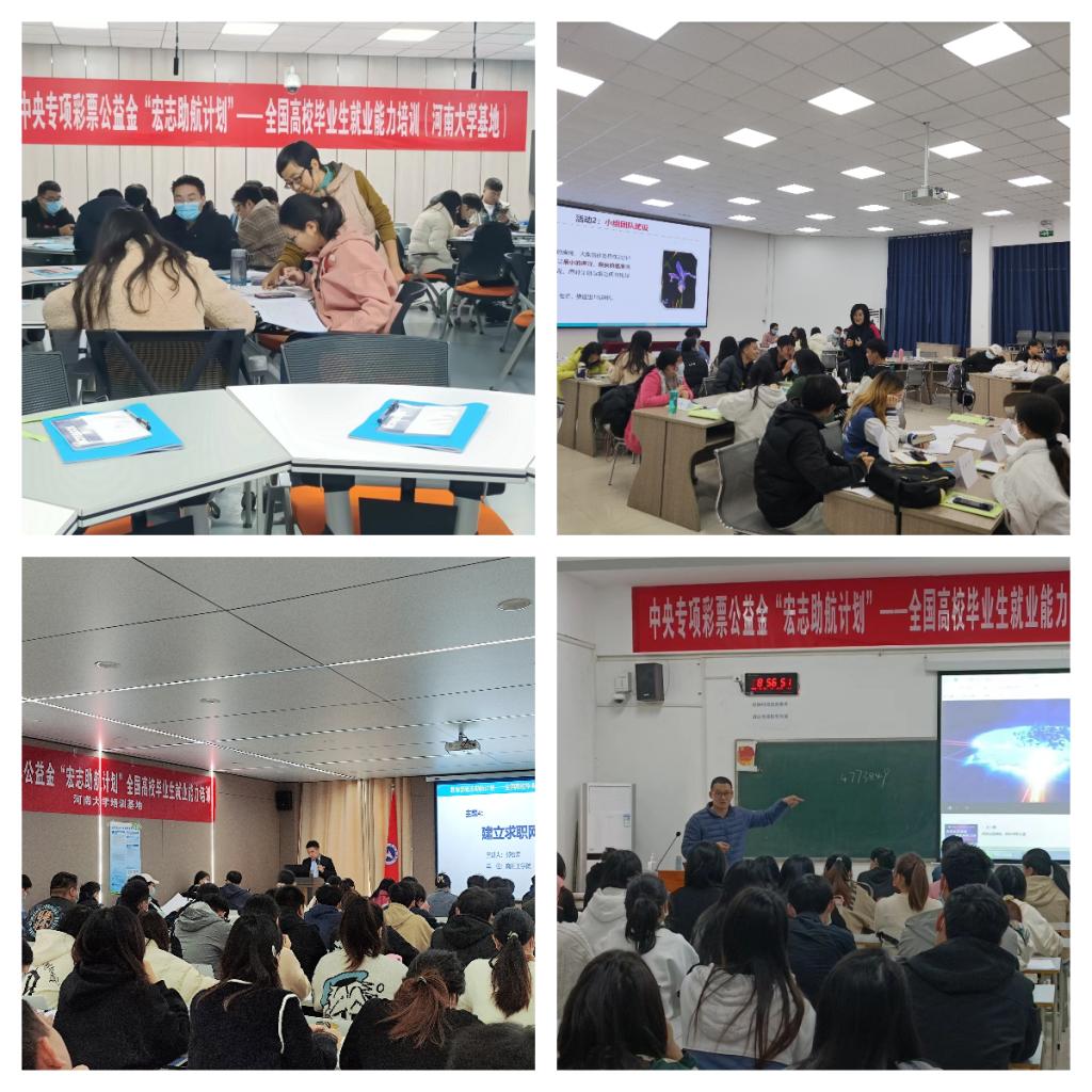 自10月3日年度培训启动以来,河南大学基地严格落实教育部、省教育厅实施“宏志助航计划”工作要求,高站位谋划、高标准开展、高质量推进。基地认真落实各项工作措施,从组建多元师资队伍、优化课程设计、创新培训形式、服务学生就业需求、开展跟踪帮扶等方面着手,面向开封、商丘、许昌等地11所高校毕业生,采取“送教上门”方式,历时近3个月,开展了11期13个班次的线上线下就业能力专项培训,涵盖专、本、硕3个培养层次的900名学生顺利结业,参训学生总体满意率近100%。