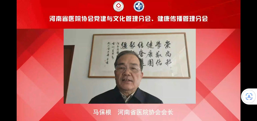 马保根代表河南省医院协会对会议的顺利召开表示热烈的祝贺!他说道,医疗卫生战线的同志们,作为健康中国建设的主力军,责任重大、使命光荣,希望两个分会的同志们要充分发挥党建引领、文化凝聚作用,为树立医疗行业新风、提升医疗服务与创新能力营造良好氛围;要大力传播健康知识,弘扬人文精神;要在深化医改、推进公立医院高质量发展中给医院党委当好参谋,为医院发展贡献力量。