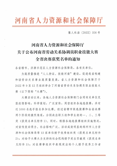 河南省劳动关系协调员职业技能大赛是由河南省人力资源与社会保障厅主办的省级行业一类赛,旨在弘扬工匠精神、培育劳动关系协调高技能人才。大赛分为职工组和学生组,试题按照国家职业技能标准命制,涉及劳动与社会保障专业知识以及我国劳动保障法律体系。自2022年9月大赛启动以来,共有近1000名选手报名参加比赛。经过省辖市选拔赛和全省决赛二个阶段,共有8名选手获省级一等奖(职工组和学生组各4名),12名选手获省级二等奖(职工组和学生组各6名),20名选手获省级三等奖。