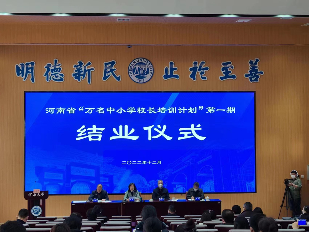 12月31日,河南省“万名中小学校长培训计划”第一期结业交流暨结业仪式举行。河南大学郑州龙子湖校区设主会场、河南师范大学设分会场,采用线上线下相结合的方式进行。省教育厅党组书记、厅长毛杰,教育厅党组成员、副厅长张传广、教育厅二级巡视员杨光,河南大学党委书记卢克平,河南师范大学副校长马治军出席。教育厅相关处室负责人,教育学部负责人、第一期近1200名学员参加了活动。活动由张传广主持。