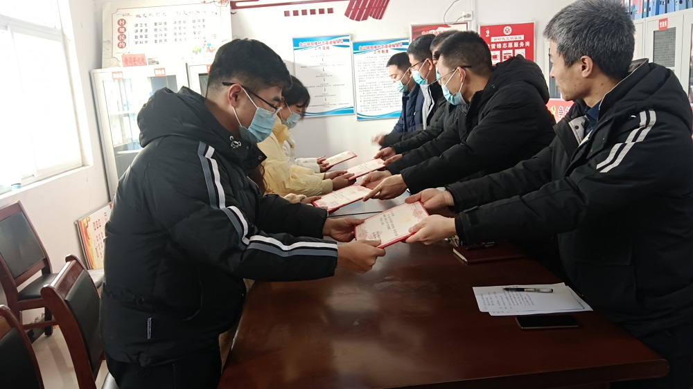 近日,河南大学驻双楼村工作队召开表彰会,对在疫情防控工作中表现突出的本村优秀大学生志愿者进行了表彰,树立先进典型,营造乡风文明建设的浓郁氛围。河南大学驻村工作队成员、驻村第一书记、村党支部书记向大学生志愿者颁发荣誉证书。