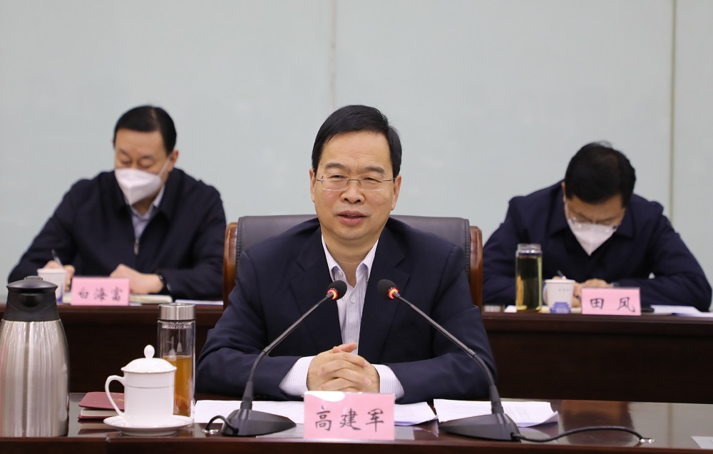 高建军指出,河南大学过去一年成功举办庆祝建校110周年暨创新发展大会,在落实科教兴国、科教兴省战略,引进高层次人才等方面取得辉煌发展成就,在开封市科学院、河南大学开封研究院成立,河南大学河南创新医学园区建设等方面取得显著成绩,双方在加深市校合作、推动开封经济社会高质量发展上硕果累累。希望市校双方继续加深战略合作,共同把开封市建设成为全省创新中心、文化中心、消费中心。开封市将以全市之力、倾城之爱支持河南大学“双一流”建设,进一步健全完善市校合作体制机制,继续高起点高标准谋划合作事项,高水平高质量加强河南大学明伦校区、金明校区建设,让开封市与河南大学共同发展得越来越好。