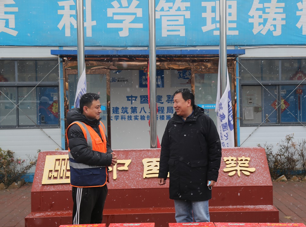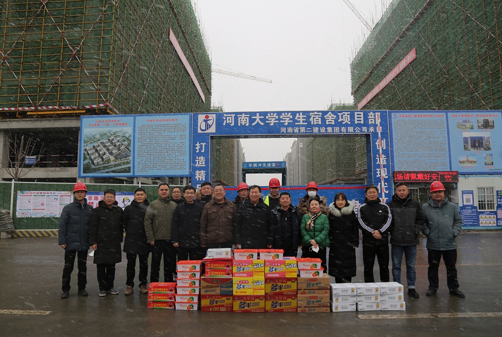 1月14日下午,副校长苗雨晨带领龙子湖校区建设与管理委员会、郑州校区综合管理办公室相关负责同志冒雪前往郑州龙子湖校区施工现场,慰问项目承建方及一线建筑工人,为他们送上节日的问候。