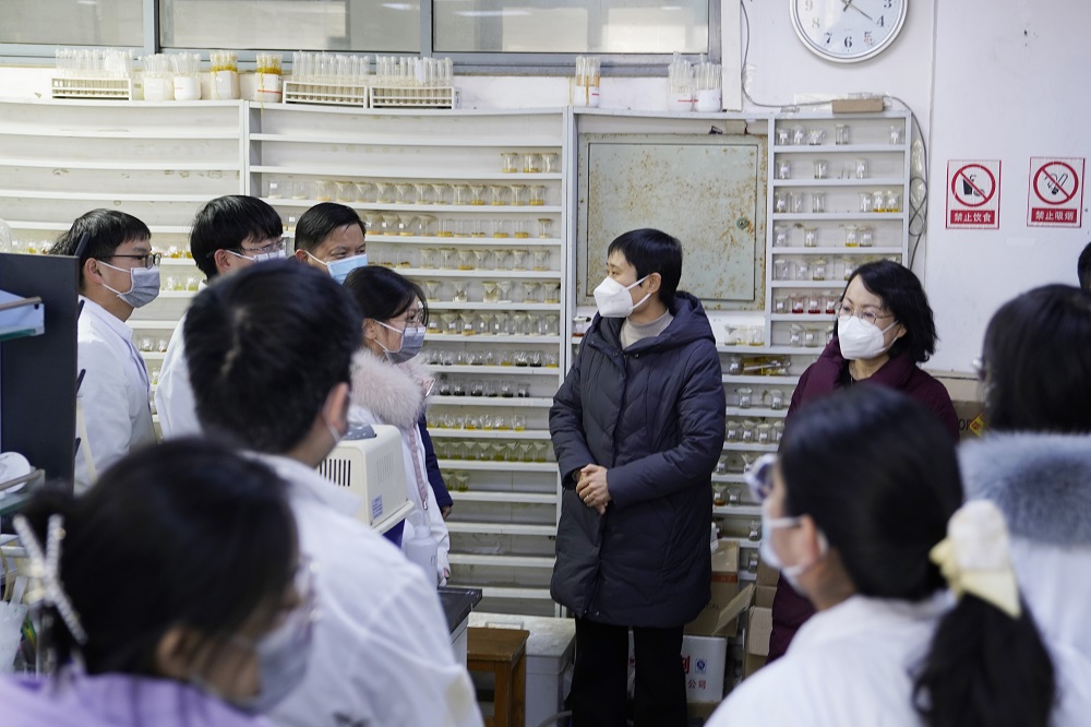 冯淑霞一行先后走进化学化工学院、材料学院、抗体药物开发技术国家地方联合工程实验室、省部共建作物逆境适应与改良国家重点实验室等单位,与正在进行科研实验和课题汇报的研究生及导师、辅导员等进行亲切交流,并仔细询问了留校研究生的科研学业、留校生活和健康状况。冯淑霞代表学校向寒假留校研究生送上关心问候和新春祝福。她对留校研究生的科研劲头和精神状态给予充分肯定,并希望他们勇于探索、积极创新,多产出高质量科研成果。她提醒研究生留校期间要遵守校规校纪,注意实验操作安全。她嘱咐研究生要重视个人身体健康,当好自身健康的第一责任人。她表示相关单位要做好春节期间留校研究生的生活保障和人文关怀,确保他们能度过平安祥和温暖的佳节。